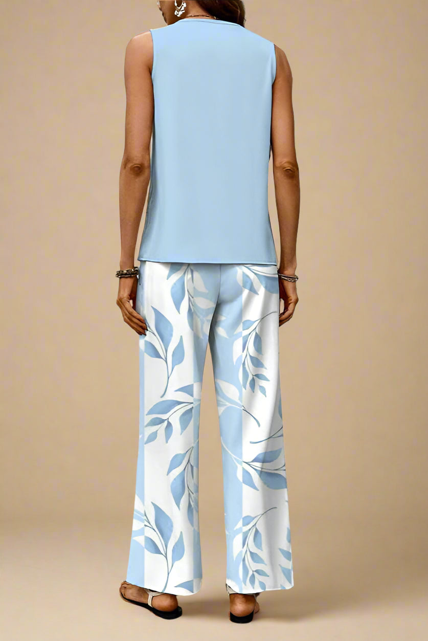 Sæt Elise | Mønstrede Bukser + Ensfarvet Top